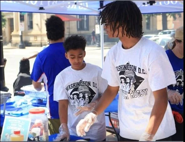 On May 24, 2025, Washington DC Youth Rugby Players, Parents and Coaches Volunteered to feed over 400 people at the corner of H and 8th Streets NE Feeding the Community Day